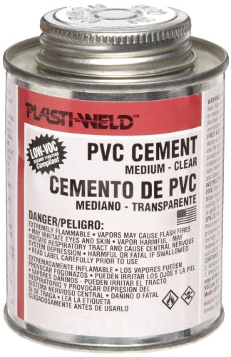 - Medium Clear PVC Cement for up to 6" diameter PVC.